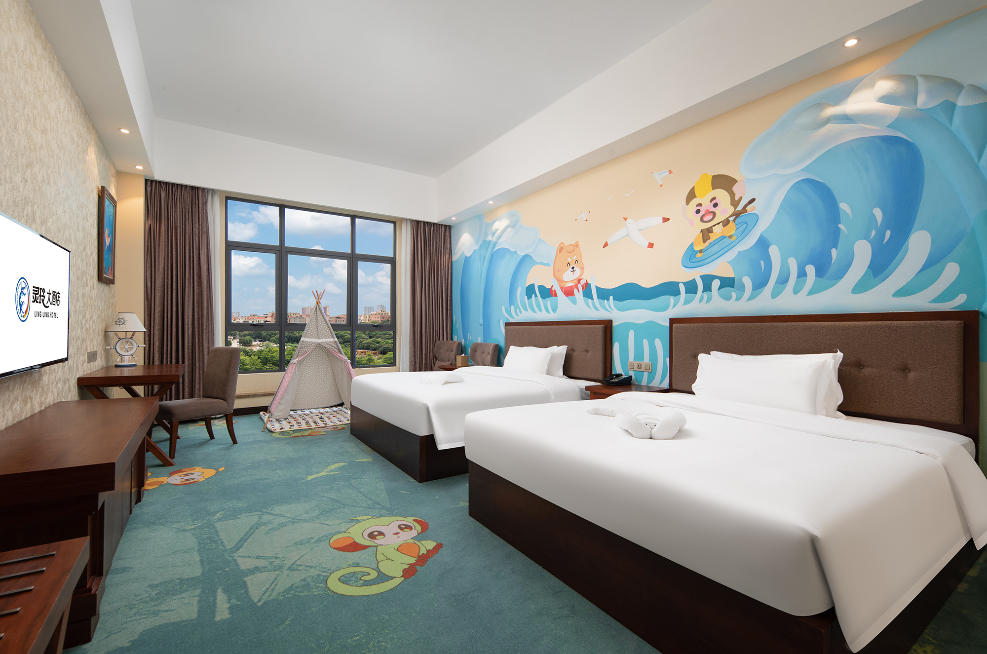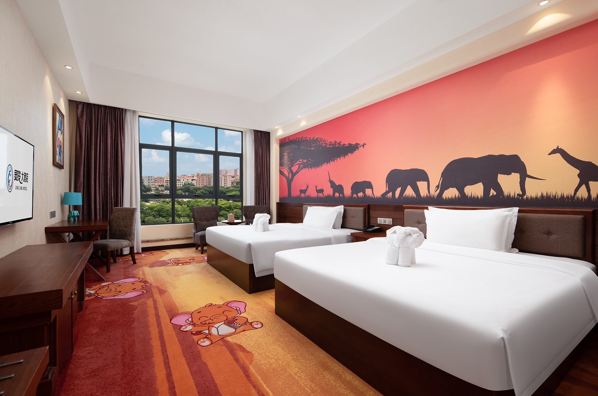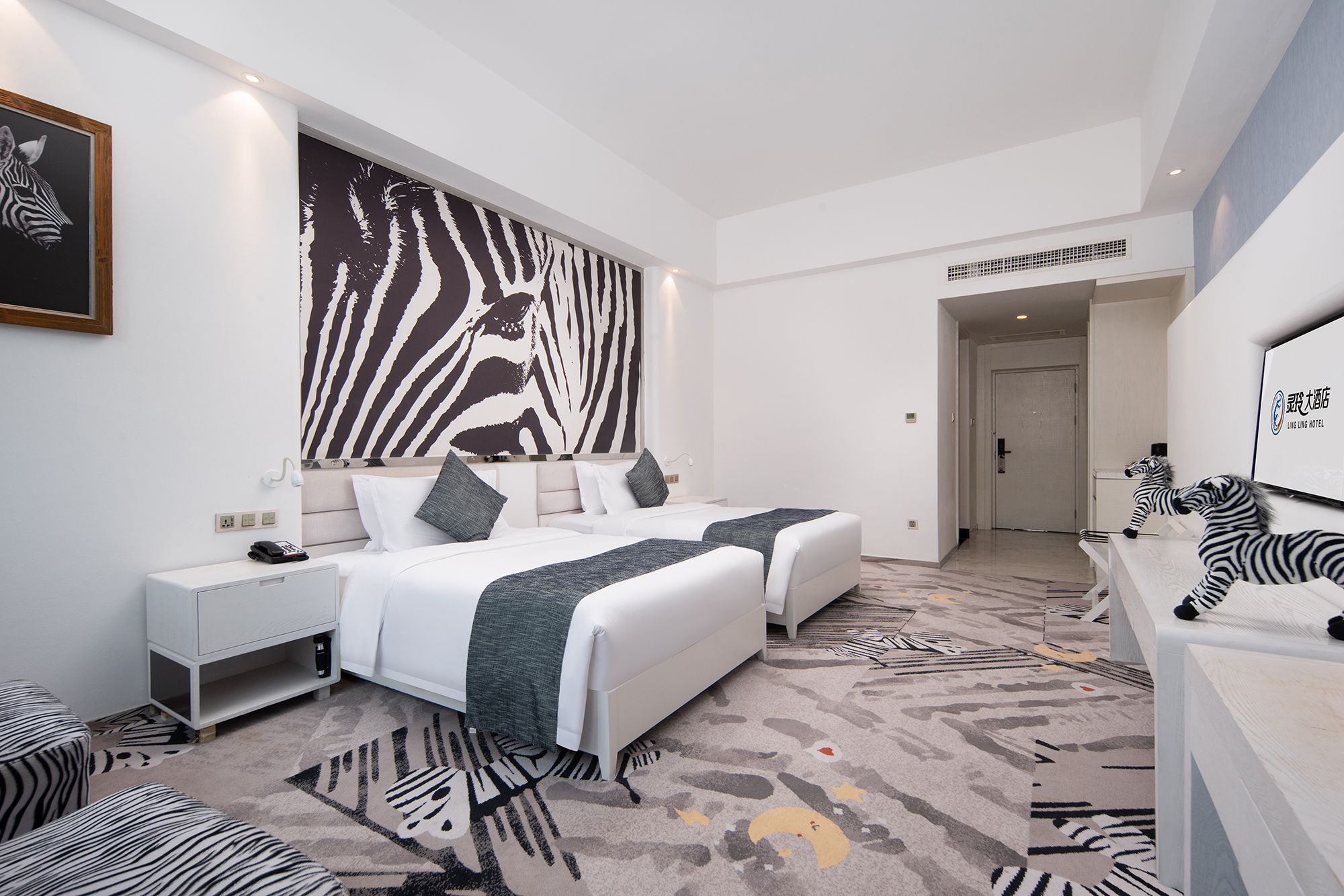 四至十四层均为不同风格的客房,有朴实无华的马里风格,田园风情的地中海风格,热带风情的东南亚风格,热带草原的肯尼亚风格,俏皮可爱的梦幻风格,狂野热辣的南非风格,尊贵奢华的欧式风格,简洁超前的现代风格,温馨人性的子母房,雄伟大气的总统套房。囊括极具特色风格客房,只为让尊贵的您,只在灵玲,就能感受世界。