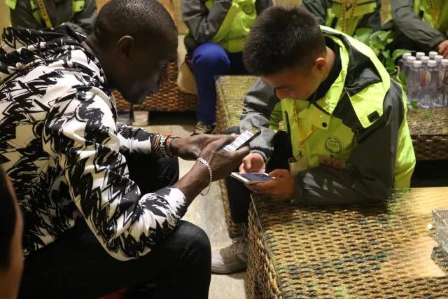 同学们主动向外籍演员提问并与其拍照留念