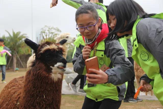 同学们不仅亲手喂羊驼胡萝卜