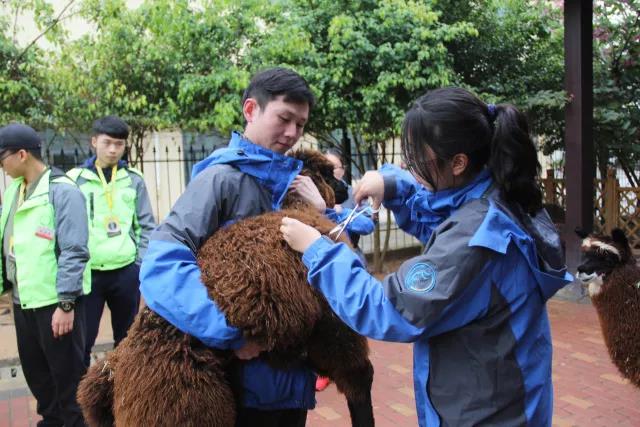 与饲养员老师一起帮羊驼“瘦身”剪毛