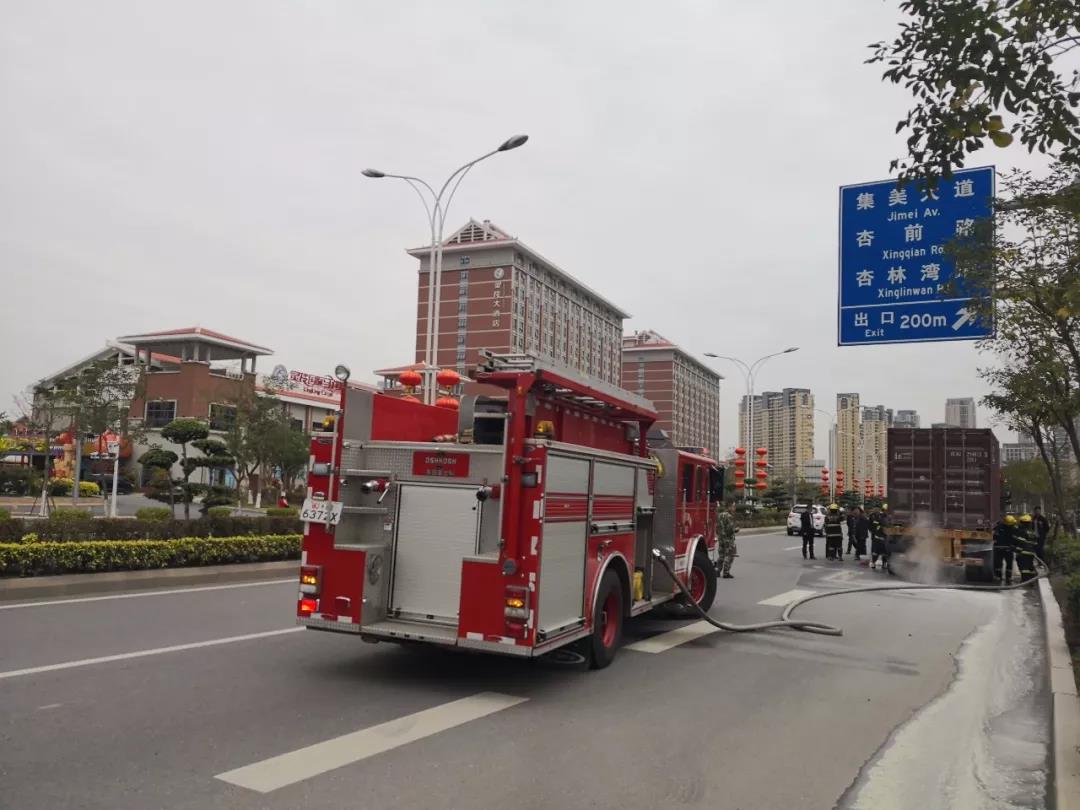 发生了一起过路货车爆胎着火事件