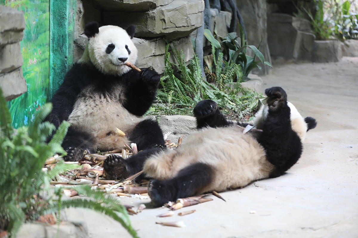 国宝大熊猫双胞胎兄弟“思念”与“思筠筠”于4月26日中午2点20分登鹭