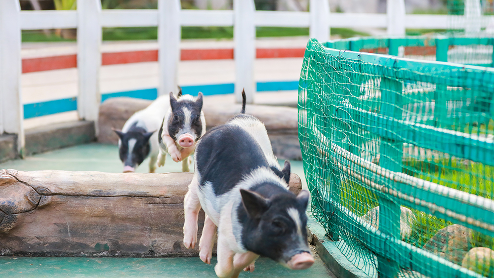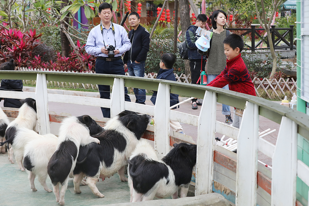 小猪赛跑、游泳比赛,想象着那浑圆可人的小香猪抖动着笨拙、喜感的身姿,在水里扑腾游动的姿势,就令人忍俊不禁。迷你猪又名小香猪,民间美其名曰“七里香”“十里香”,体重一般不超过20公斤,以短小矮胖见萌,迷你猪原产于少数民族山区,是我国独有的物种。与别的迷你猪的笨拙不同,灵玲动物王国的迷你猪显得格外可人,看似笨拙的身躯,实则灵活之至,不仅能赛跑、游泳,还能跳圈、起舞,与游客亲密互动,呆萌之至。